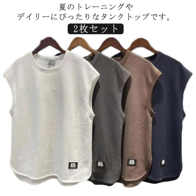 2枚セット オーバーサイズ ノースリーブ ダンス Tシャツ シンプル クルーネック ゆったり トレーニング 筋トレ 薄手 メンズ スポーツ 運動着 吸汗速乾 カットソー 夏物 無地 タンクトップ 大きいサイズ