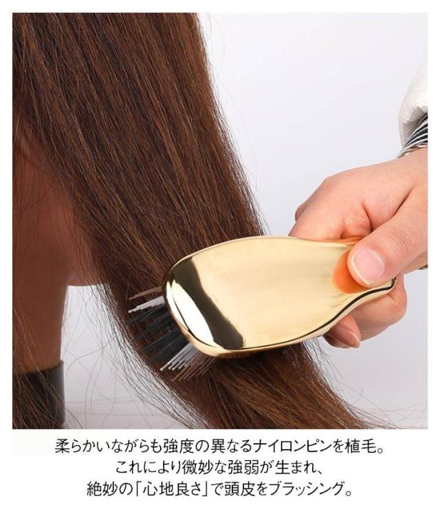 | シャンプー、トリートメント、ブロー、頭皮のマッサージなど、複数シーンで使えるスカルプブラシ。 柔らかいながらも強度の異なるナイロンピンを植毛。これにより微妙な強弱が生まれ、絶妙の「心地良さ」で頭皮をブラッシング。 頭皮の丸みにぴったりフィットする設計で、どこからブラッシングしてもしっかりキレイに汚れを落とすことが可能。 | |