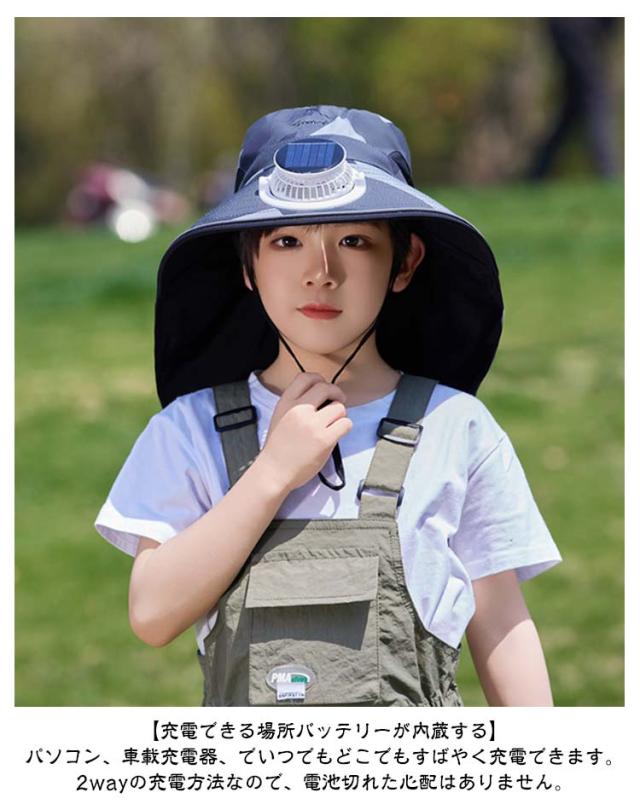 首ガード 女の子 日よけ帽子 扇風機付き帽子 【ソーラー+USB充電】2way 撥水 ネックカバー uvカット 速乾 【ソーラー+USB充電】2way 軽量 USB充電 ソーラー 扇風機 帽子 ファン付き ハット 日焼け防止 日除け帽子 つば広帽子 アウトドア