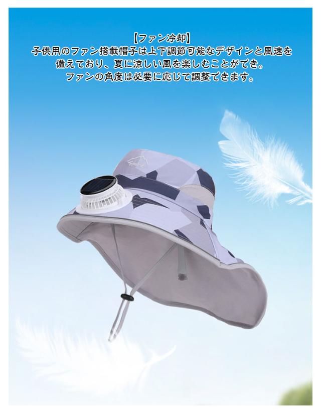 | ソーラー+USB充電2way 軽量・速乾・撥水・通気性 サイズ&角度調整可能 ネックカバー付き キッズ用 扇風機付きuvカット帽子 【ファン付きサンバイザーハット】 USB給電、電池交換せずにUSBで充電でき、1時間充電して約3時間使用できるので便利です。省エネ、環境保護。再生可能な太陽エネルギーを利用して内蔵ファンを動かす当社のソーラーパワーファンハットで、お子様を涼しく守りましょう。 【ファン冷却】 子供用のファン搭載帽子は上下調節可能なデザインと風速を備えており、夏に涼しい風を楽しむことができ。ファンの角度は必要に応じて調整できます。 【ソーラー+USB充電の多機能キャップ】 ソーラーパネルを日光を当てることで充電できます。晴れの日にどこでもいつでも充電可能♪雲の日もUSB充電できるため、心配なし、安心で使うことができます。 【快適性】 額前エアクッションは汗を吸収して快適である,通気性を促進し、後頭部やわらかいゴムひもの弾力性が調節できます。 ハイキング、ランニング、サイクリング、ショッピング、ビーチ旅行、登山、スクエアパーティー、その他のアウトドアアクティビティに適しています。 【広いつば・通気性抜群】 広いつばで、紫外線遮蔽率は99%以上です。周りはメッシュ素材で、通気性が抜群。蒸れない・吸湿・速乾性に優れ、夏だけでなく、オールシーズンに活躍していただけます。 【紫外線UV対策・熱中症対策】 大きなつばのある遮光エリアは、紫外線をしっかりカバーし、日焼けを防ぐことができます。暑い季節の不快感を最小限に抑え、子どもに快適なアウトドア体験を提供します。 アウトドアでの紫外線 UV対策だけではなく、軽量で通気性よく、 熱中症対策にも効果的! 蒸し暑さでは苦手しても、扇風機付きの帽子が大活躍しました! 【速乾&撥水加工でより安心】 メイン素材には撥水加工が施されているので、急な雨や海やプールでの水遊びの水滴から頭を守ってくれる!アウトドア活動でも安心。 ゴムによる頭回りは48-55cmまで調整可、性別を問わず、ほとんどの頭型に適している 顎日も紐がつき、サイズ調整でき、風が強い時は帽子も飛ばされません。 【充電できる場所バッテリーが内蔵する】 パソコン、車載充電器、でいつでもどこでもすばやく充電できます。2wayの充電方法な | |