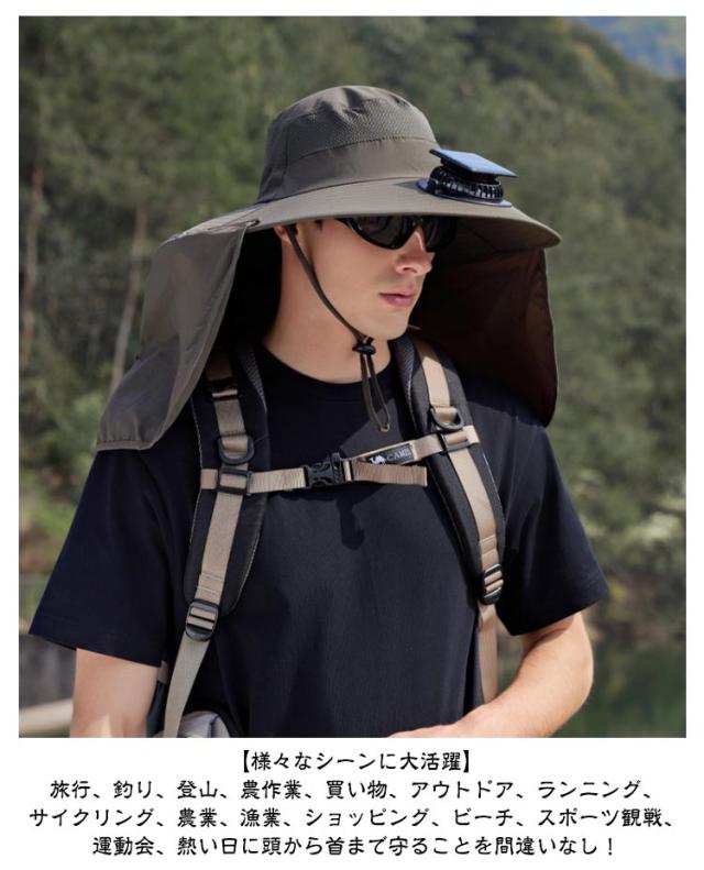 | ソーラー+USB充電2way 軽量・速乾・撥水・通気性 サイズ&角度調整可能 ネックカバー取り外し可能 扇風機付き uvカット帽子 男女兼用 【2WAYで実用性】 帽子だけを被って普段のお出かけやちょっとしたハイキングに カバーは自由に取り外しネックカバーをつけて登山やキャンプに 【扇風機付きキャップ・3段階調整可】 顔を冷やすため、つばの部分にファンがあり、暑い夏でも日差しを遮りながら顔や首まで涼しい風を送り、汗をかいても屋外で少しでも快適! ワンボタンで風量を3段階まで調整でき、風向も上下に調整できます。 【ソーラー+USB充電の多機能キャップ】 ソーラーパネルを日光を当てることで充電できます。晴れの日にどこでもいつでも充電可能♪雲の日もUSB充電できるため、心配なし、安心で使うことができます。 【様々なシーンに大活躍】 旅行、釣り、登山、農作業、買い物、アウトドア、ランニング、サイクリング、農業、漁業、ショッピング、ビーチ、スポーツ観戦、運動会、熱い日に頭から首まで守ることを間違いなし! 【広いつば・通気性抜群】 広いつばで、紫外線遮蔽率は99%以上です。周りはメッシュ素材で、通気性が抜群。蒸れない・吸湿・速乾性に優れ、夏だけでなく、オールシーズンに活躍していただけます。 【紫外線UV対策・熱中症対策】 アウトドアでの紫外線 UV対策だけではなく、軽量で通気性よく、 熱中症対策にも効果的! 蒸し暑さでは苦手しても、扇風機付きの帽子が大活躍しました! 【5000rpm高速モーター・大風量】 2〜3000rpmの通常モーターと違い、5000rpmの強力の高速モーターが搭載、強力の風力を発揮します。夏の日にずっと涼しく快適。 【速乾&撥水加工でより安心】 メイン素材には撥水加工が施されているので、急な雨や海やプールでの水遊びの水滴から頭を守ってくれる!アウトドア活動でも安心。 ゴムによる頭回りは55-60cmまで調整可、性別を問わず、ほとんどの頭型に適している 顎日も紐がつき、サイズ調整でき、風が強い時は帽子も飛ばされません。 【充電できる場所バッテリーが内蔵する】 パソコン、車載充電器、でいつでもどこでもすばやく充電できます。2wayの充電方法なので、電池切れた心配はありません。 | |