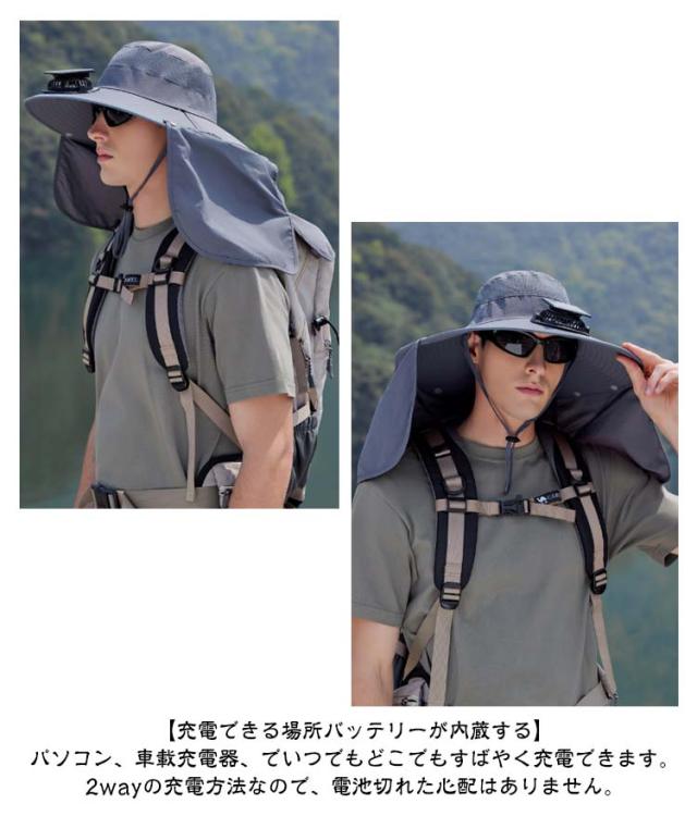 ファン付き 2way 扇風機付き帽子 帽子 【ソーラー+USB充電】 速乾 撥水 軽量 首ガード アウトドア ソーラー 扇風機 日焼け防止 メッシュ ハット USB充電 日除け帽子 つば広帽子 【ソーラー+USB充電】 サンバイザー 夏用 uvカット おしゃれ 農業 屋外作業 釣り 熱中症対策