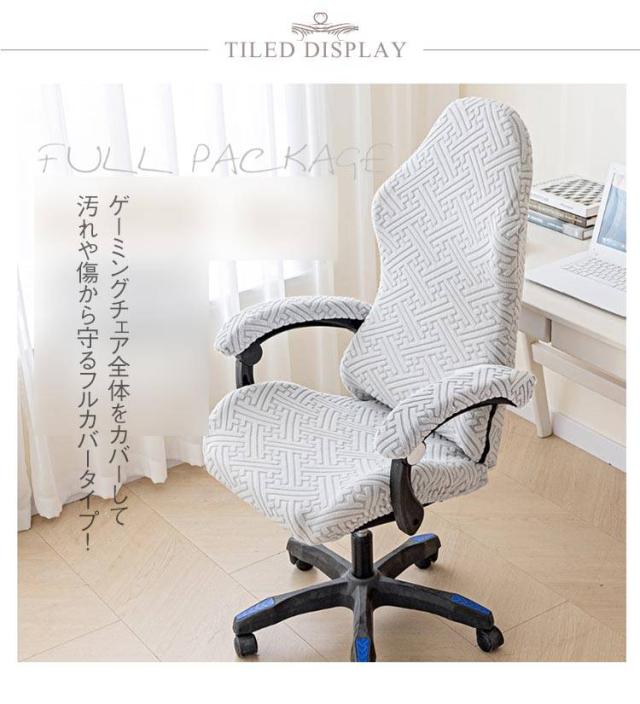 | ゲーミングチェアカバー 4点セット ジャガード仕様 ゲーミングチェア全体をカバーして汚れや傷から守るフルカバータイプ! 伸縮性のある生地で、ゲーミングチェアをすっぽりと覆うように被せてからジッパーを下ろします。 丸洗いできるのでいつでも清潔に使用できます。 シンプルなデザインでどんなインテリアにもマッチします。お部屋の雰囲気を損ねない見た目です! | |