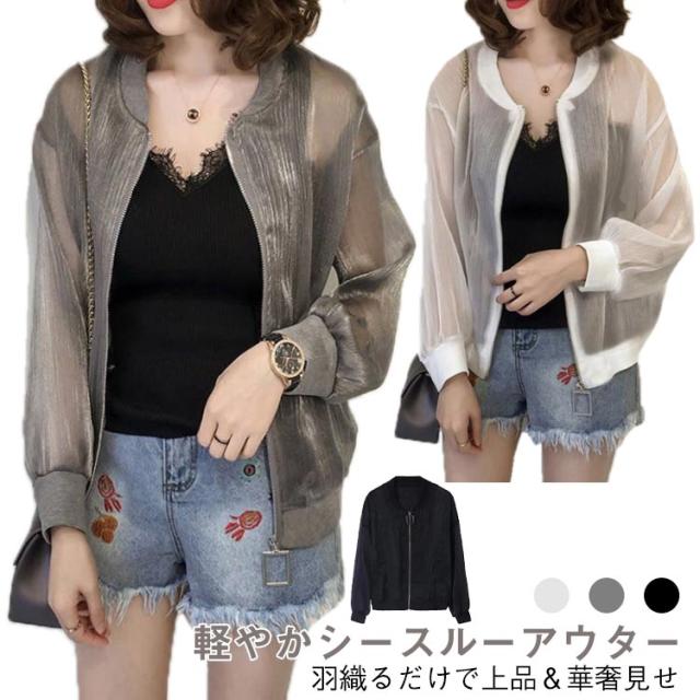 ジャケット シースルー 薄手 夏用アウター ブルゾン カーディガン アウター 羽織り 透け感 上着 涼しい 大きいサイズ 長袖 紫外線対策 春夏秋