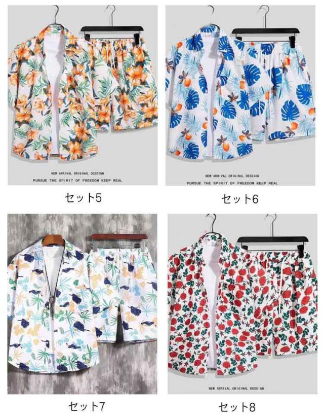リゾート ハワイ旅行 花柄シャツ 夏 アロハシャツ 海 ペアコーデ メンズ セットアップ アロハシャツ カップル服 ビーチウェア シャツ 短パン 薄手 涼しい 上下セット 夏コーデ