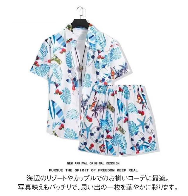 アロハシャツ 夏 セットアップ ペアコーデ リゾート 花柄シャツ ビーチウェア 海 アロハシャツ メンズ カップル服 旅行 シャツ 短パン ハワイ旅行 涼しい 上下セット 夏コーデ