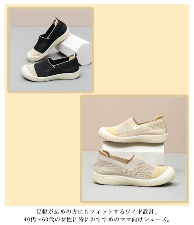 レディース 春夏 通気性 幅広 軽量 メッシュ 疲れにくい 歩きやすい 秋用 ママシューズ スリッポン カジュアルシューズ 40代 50代 60代 ぺたんこ靴 楽ちん 滑り止め 履きやすい 蒸れにくい 母の日 プレゼント