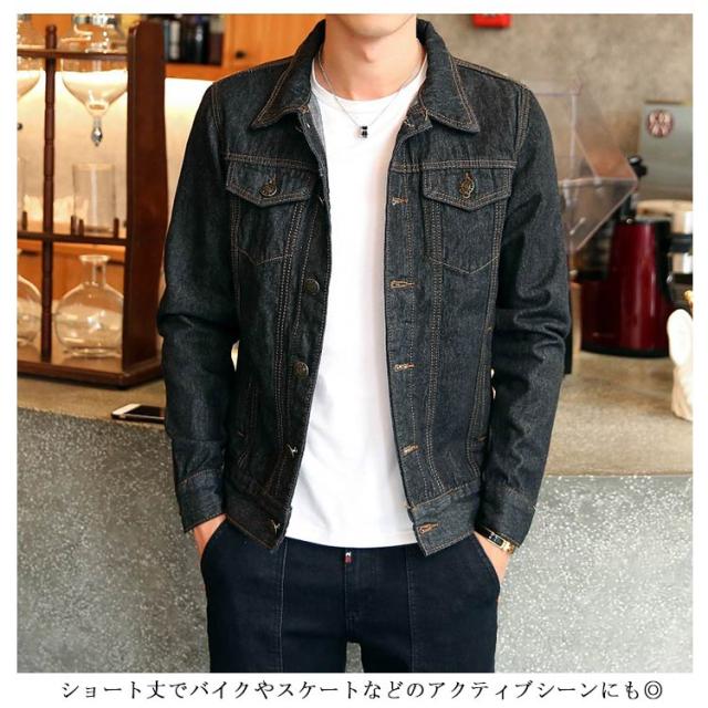 細身 韓国ファッション バイクジャケット アウター 春秋 長袖 デニムジャケット メンズ ライトブルー 上着 デニムジャケット ショート丈 カジュアル ジージャン ストリート系 学生 黒 内ポケット付き ダークブルー M-5XL 大きいサイズ おしゃれ