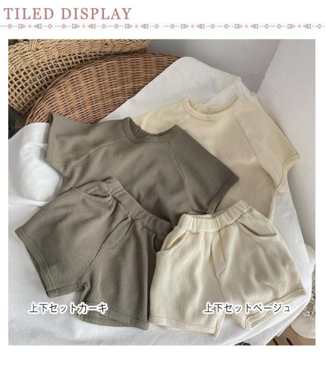 サマーニット 110 カーキ 男の子 ベビー ワッフル アイボリー キッズ ブラウン 120 80 90 100 セットアップ 子供服 130 通園 部屋着 ルームウェア ベージュ リラックス 半袖 ハーフパンツ 夏 春 秋 こども服 キッズ 韓国ファッション