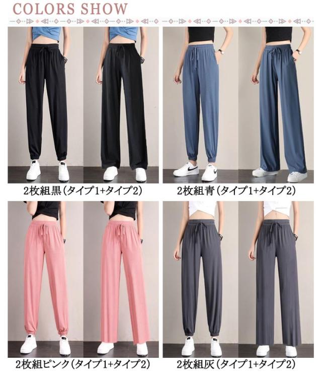 速乾 冷感パンツ ポケット付き 夏涼 2枚セット!ジャージパンツ スウェットパンツ 薄手 夏 ヨガ ワイドパンツ 動きやすい 吸汗 ジム用 接触冷感 2枚セット!ジャージパンツ スポーツ ダンスウェア ひんやり 大きいサイズ ヨガパンツ 伸縮性 涼しい 通気