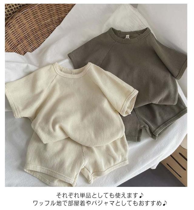 ベージュ ワッフル キッズ 子供服 サマーニット アイボリー 80 部屋着 ブラウン 遊び着 男の子 90 100 110 120 130 通園 カーキ ルームウェア ベビー リラックス 半袖 ハーフパンツ 夏 春 秋 こども服 キッズ 韓国ファッション