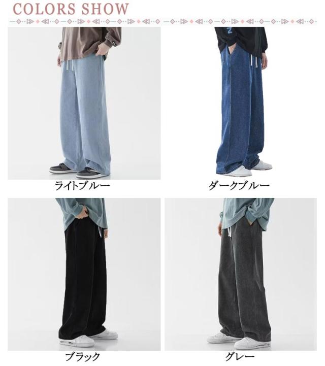 長ズボン デニムパンツ Gパン ワイドパンツ 夏用 涼しい 無地 ジーンズ ボトムス 長ズボン ストレートパンツ リラックス メンズ ジーパン ロングパンツ ダンス ストリート ゆったり パンツ デニム ウエストゴム 調整紐 大きいサイズ 春 夏 秋