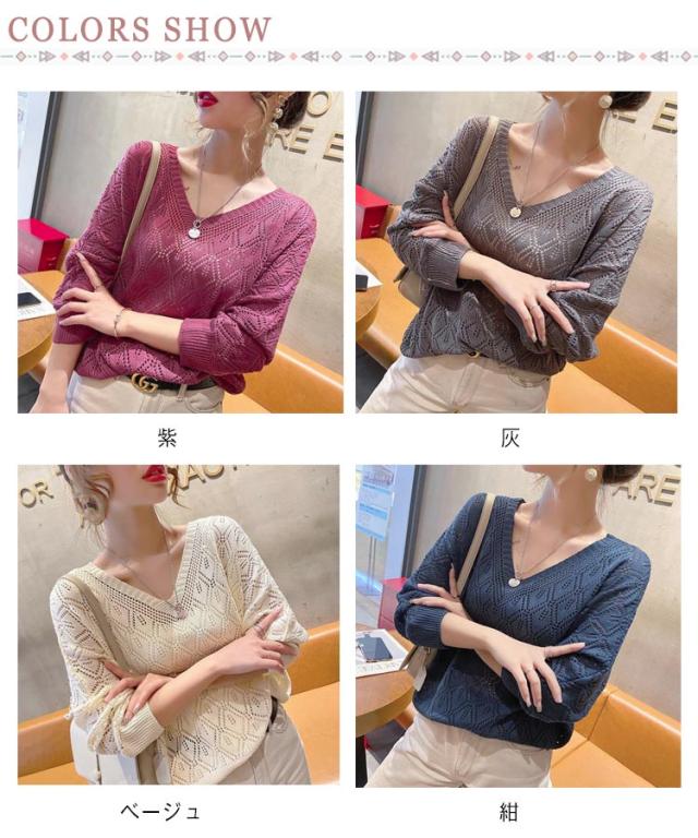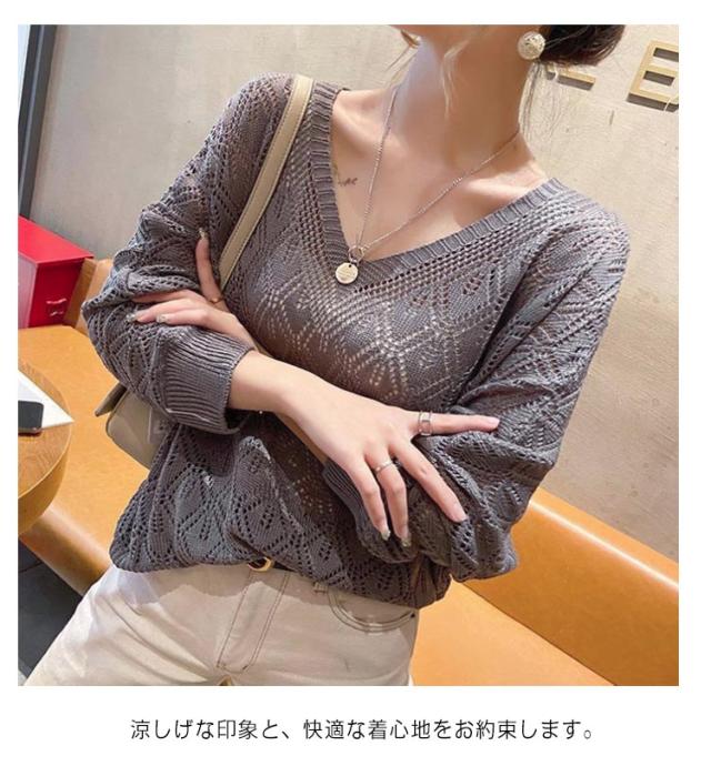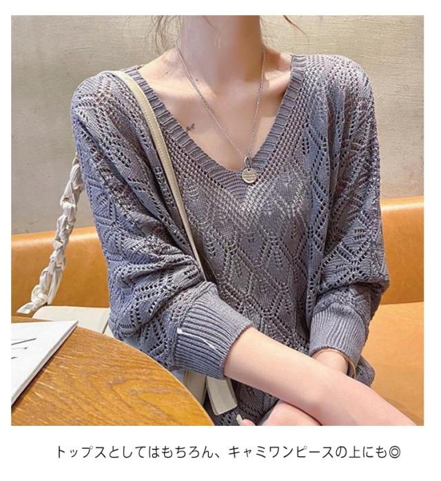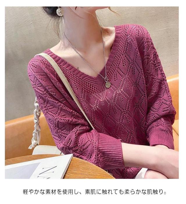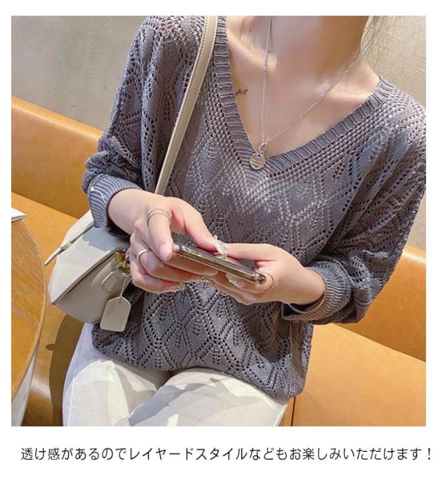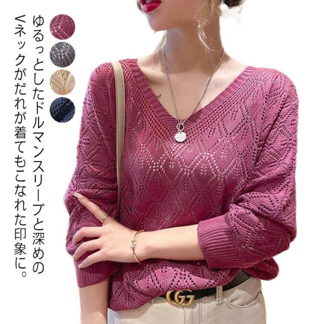 ドルマン ドルマン vネック 七分袖 ゆったり 大きいサイズ シアーニット カジュアル ドルマンニット 透かし編みサマーニット 体型カバー 透かし編みサマーニット レディース 透け感 日焼け防止 冷房対策 春夏