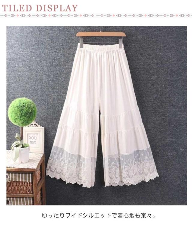 レディース ペチパンツ ペチパンツ 透け感 ロングパンツ レース ワンピース下 春夏秋 ボトムス 裾レース ワイドパンツ レイヤード ロング 九分丈 レディース 下着 ナチュラル ペチパンツ インナー ペチコート パンツ 透け対策 インナー