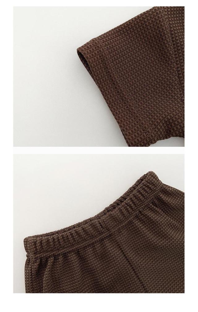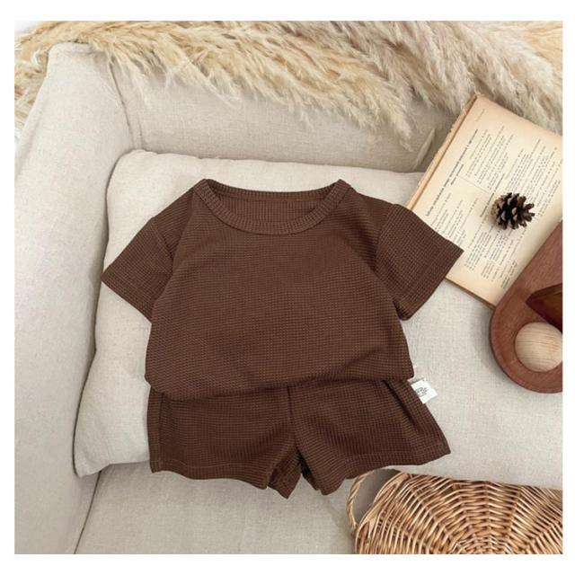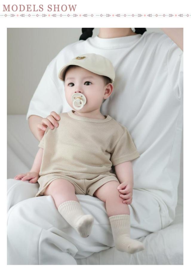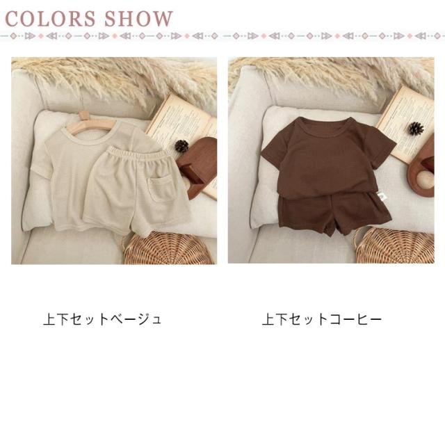 ワッフル 薄手 90cm 上下セット 80cm コーデ 男の子 パジャマ 110cm 夏服 夏 ベビーファッション 半袖 73cm 生地 女の子 100cm お出かけ おしゃれ かわいい セットアップ 韓国 旅行 ベビー 春夏 ワッフル 子ども服 こども ショート丈 ズボン パンツ