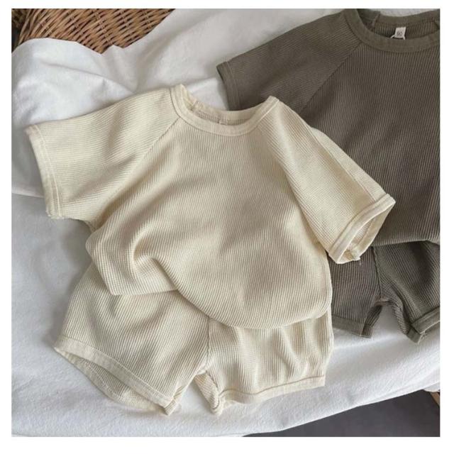 キッズ サマーニット ブラウン 部屋着 ベージュ 110 カーキ 男の子 キッズ アイボリー 80 90 子供服 100 120 セットアップ 通園 ルームウェア 130 遊び着 リラックス 半袖 ハーフパンツ 夏 春 秋 こども服 ベビー 韓国ファッション