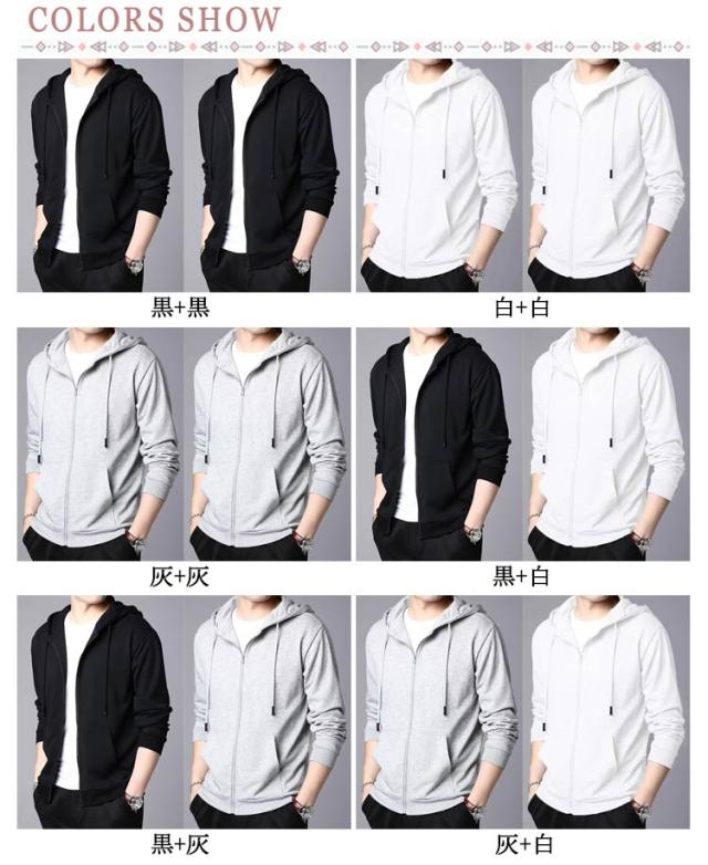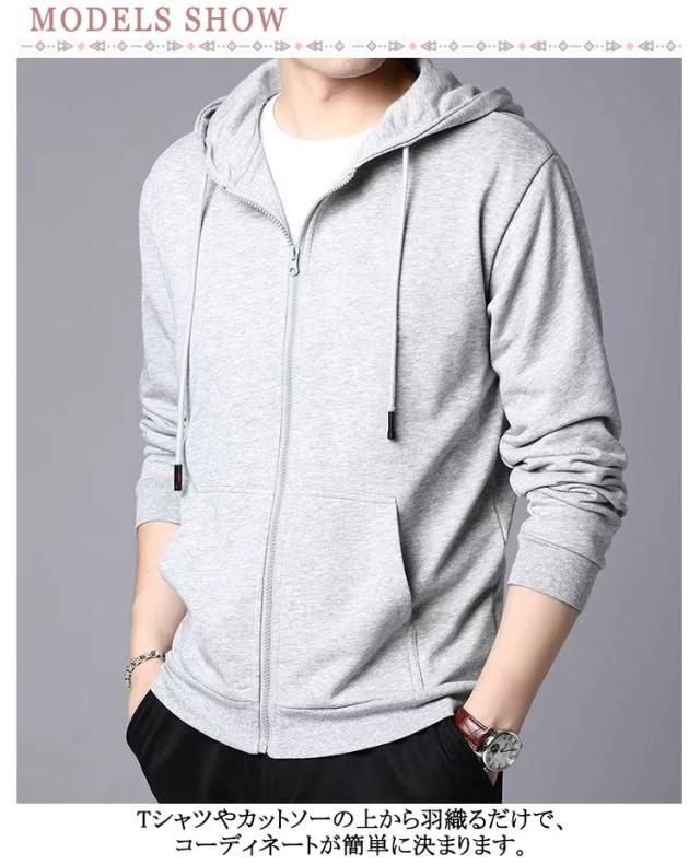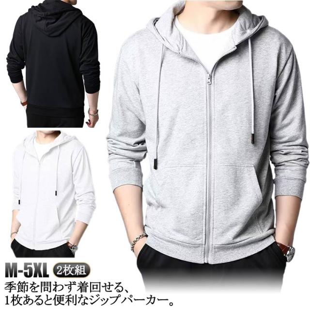 無地 ジップアップパーカー 春 春 長袖 薄手パーカー 夏 スウェットパーカー 2枚組 薄手 羽織り トップス ジップパーカー ルームウェア ウォーキング メンズ シンプル 大きいサイズ 春夏秋 ジップパーカー