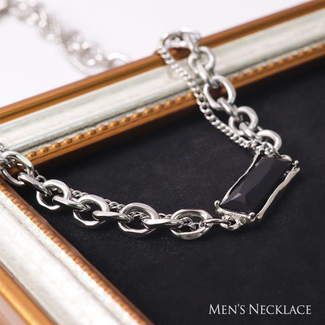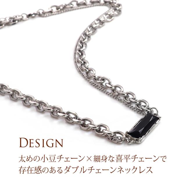 訳あり ネックレス メンズ ステンレス 二連ネックレス シルバー カラー ブラック チェーンネックレス シンプル 樹脂ストーン 2連 小豆 喜平 チェーン 延長 長め モード クール カジュアル おしゃれ プチプラ 男性 ユニセックス お母の日 ギフト 2026