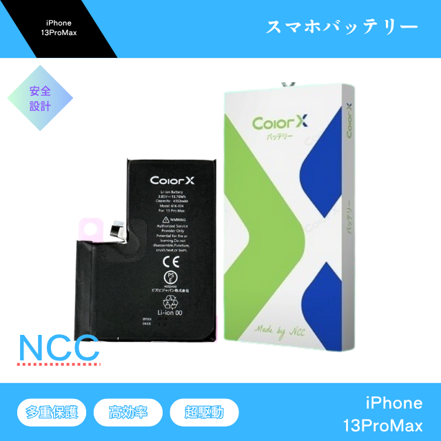 iPhone13ProMax バッテリー NCC ColorX 交換 互換 バッテリー 防水シート バッテリーステッカー PSE取得