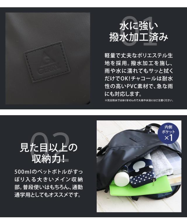 チャコールは耐水性の高いPVC素材で、急な雨にも対応します。
