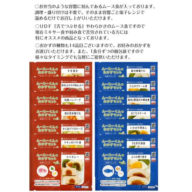 【介護食】冷凍 ムーミーくんのおかずセット 14パック入り(お肉シリーズ7品 お魚シリーズ7品) 舌でつぶせる 区分3 ムース食 ミキサー食 刻み食 嚥下食 やわらかい おかず 送料無料 日本ケアミール 当日出荷