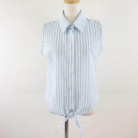 【中古】コクレ COQULE シャツ ブラウス ノースリーブ ストライプ 水色 白 *T362 レディース