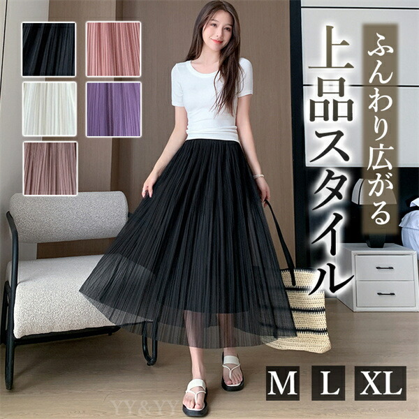 | 商品説明 | ふんわり上品プリーツスカート。ロングスカート。シルク生地。M・L・XLサイズ。ウエストゴム。お出かけに最適。カジュアル。ドレスアップ。美脚・華奢見え効果。体型カバー。 |
