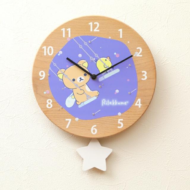 壁掛け時計 木製 リラックマ ブランコ キャラクター おしゃれ かわいい 木 アナログ インテリア リビング 日本製 プレゼント ギフト 寝室 子供部屋