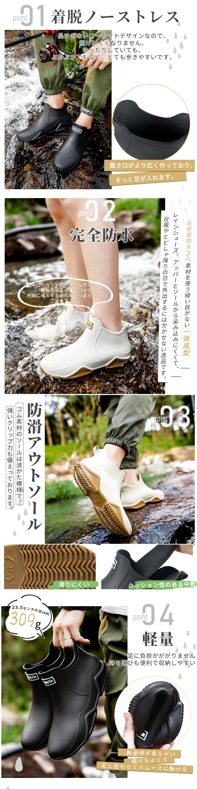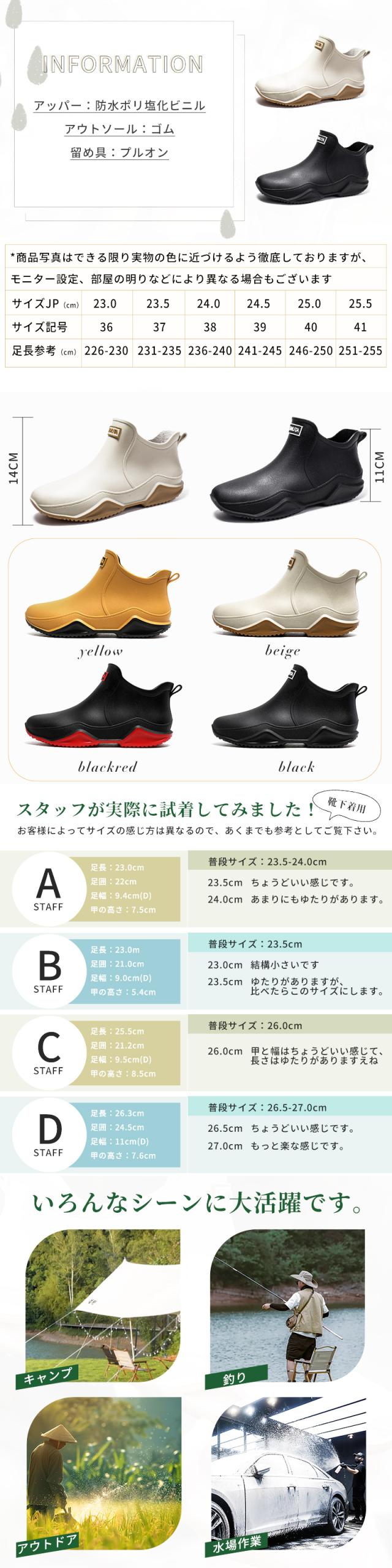 レインシューズ 完全防水 レインブーツ レディース メンズ ショートブーツ 晴雨兼用 雨 雪 台風 雨靴 農作業 釣り 園芸 作業 着脱簡単 ブラック 大きいサイズ 23.0cm-27.0cm