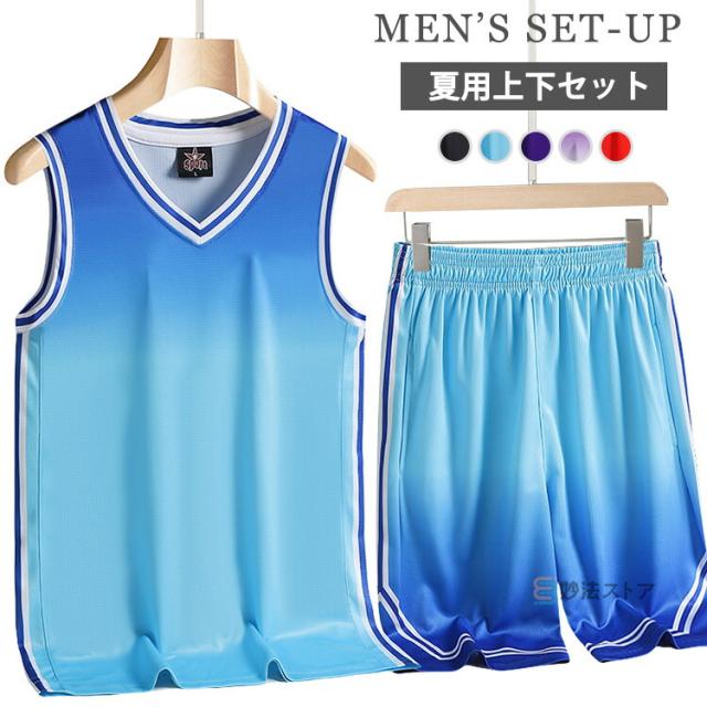 ユニフォーム 上下セット バスケットボールウエア メンズ スポーツウェア バスケット セットアップ タンクトップ ショートパンツ 夏 バスケットボール 体育大会 チーム 練習着 部活 イベント バスケT ショーツ