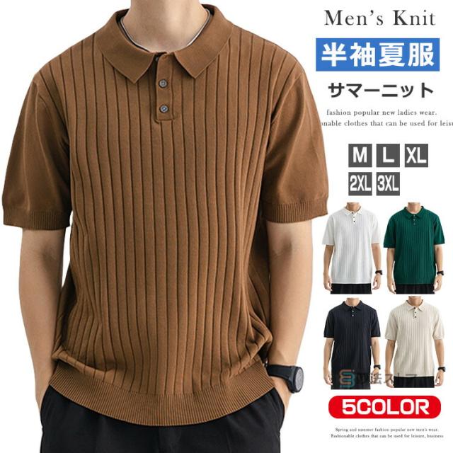 サマーニット サマーセーター メンズ 半袖 ニット セーター ニットポロ ゴルフシャツ ポロシャツ トップス カジュアル 半袖ニット 涼しい キレイめ ゴルフ ビジネス 父の日 プレゼント 夏 夏服 ファッション