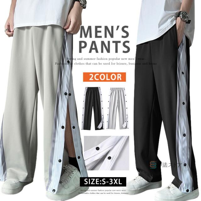 サイド開き バスパン メンズ スポーツパンツ ランパン サイド開きパンツ ロングパンツ バスケットパンツ ダンス衣装 ダンスパンツ 練習着 運動着 カジュアル ストレート ウォーキング ランニング 春夏