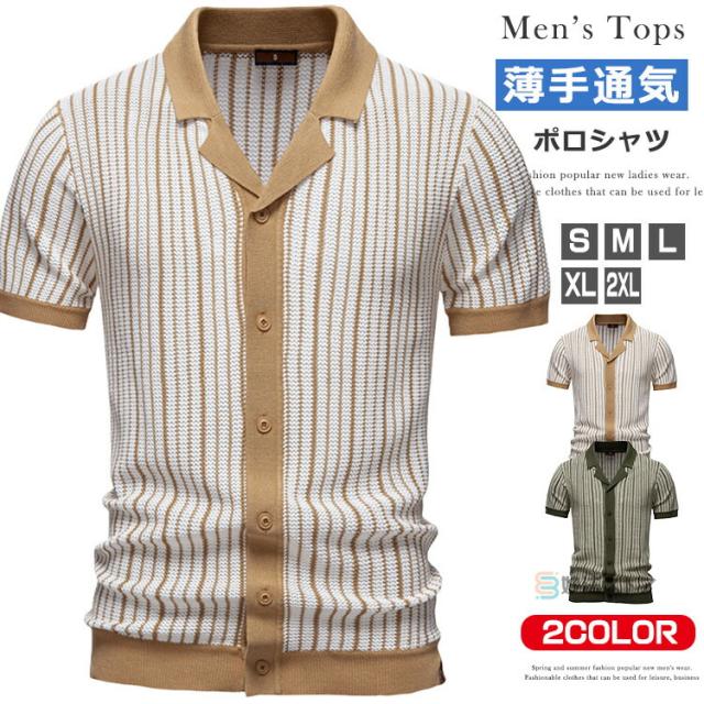 前開き ニット ポロシャツ メンズ 半袖 サマーニット クールビズ テーラードカラー メッシュニット ゴルフウェア 半袖ポロシャツ ニットポロシャツ オフィスカジュアル サマーセーター ビジカジ メンズニットポロシャツ 父の日 贈り物