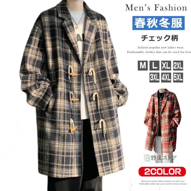 コート ダッフルコート メンズ チェスターコート チェック柄 ダッフル アウター ロング丈 ビジネス 秋 冬 メンズコート ジャケットコート 学生 通学 通勤 秋服 秋物 冬服 冬物 メルトン ロングコート オシャレ