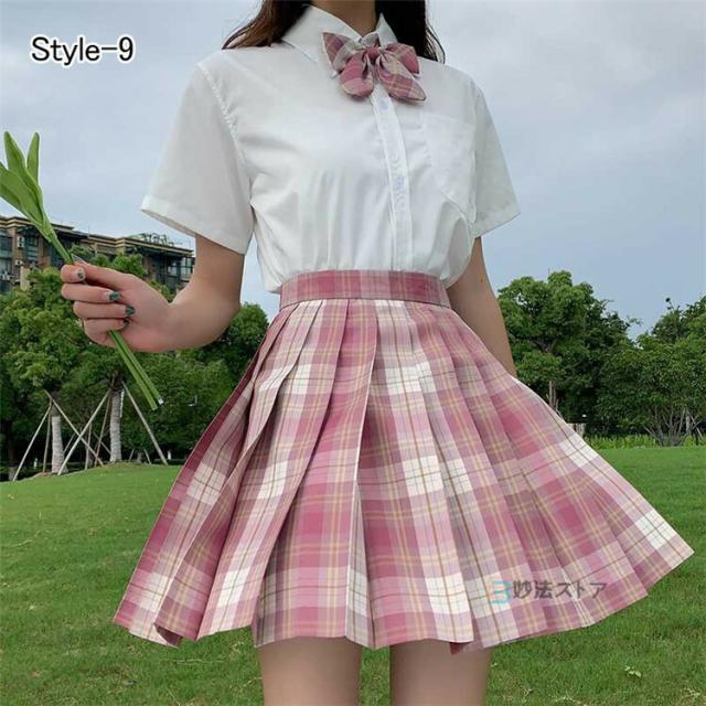 制服 学生制服スカート 2点セット チェック柄プリーツスカート スクール 制服 女子高生 ジュニア