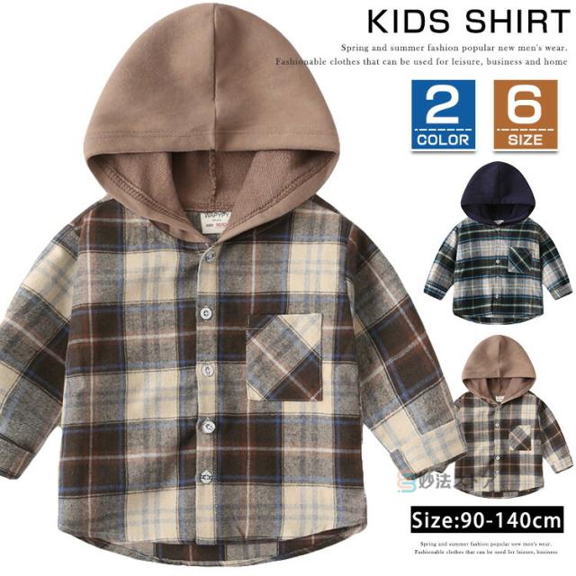 ネルシャツ キッズ 子供服 シャツ 男の子 女の子 チェックシャツ フード付き シャツ ブラウス チェック トップス 長袖 幼稚園 小学生 通園 通学 子ども服 こども服 男の子 女の子 ジュニア カジュアル お出かけ シャツジャケット