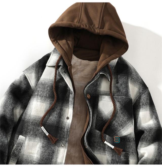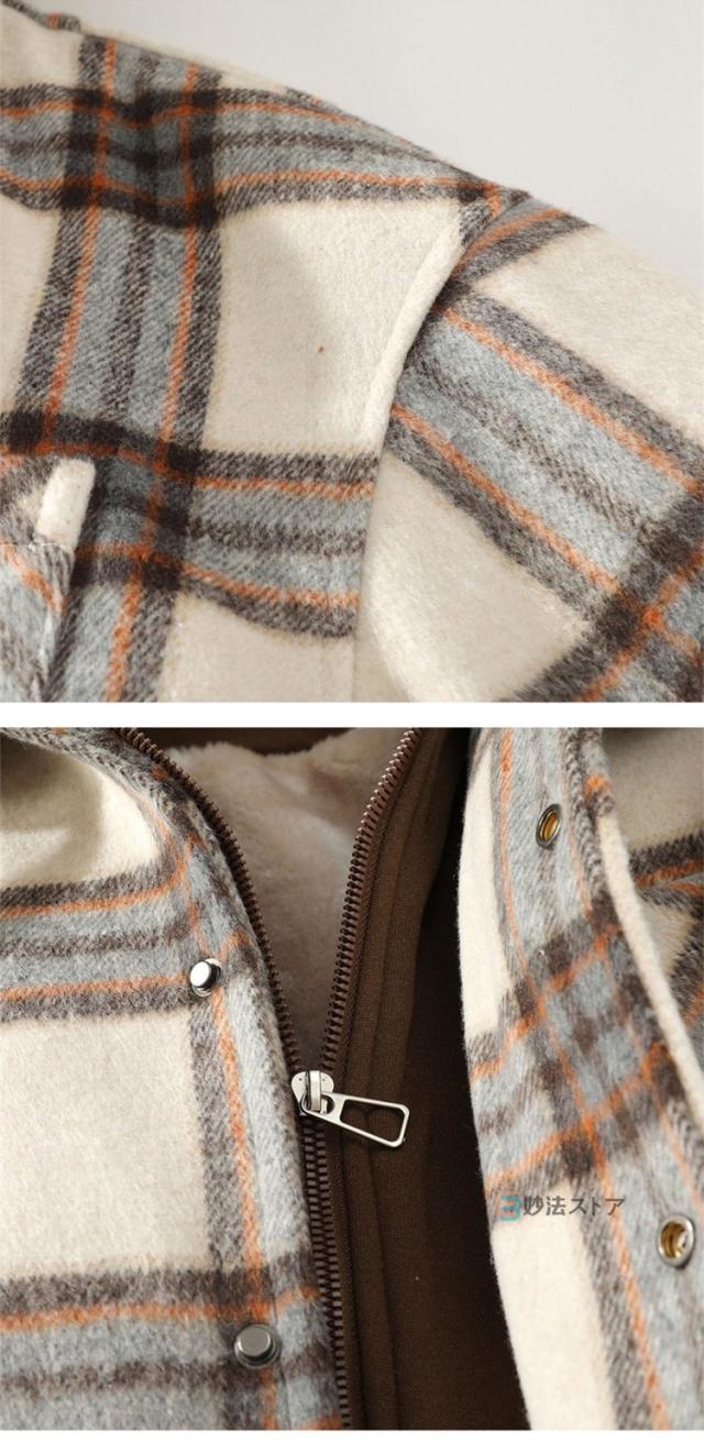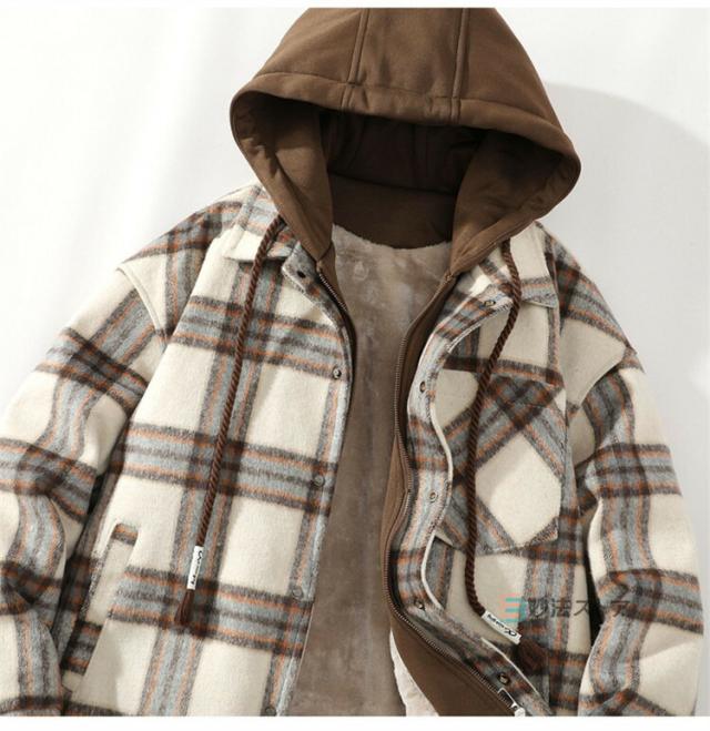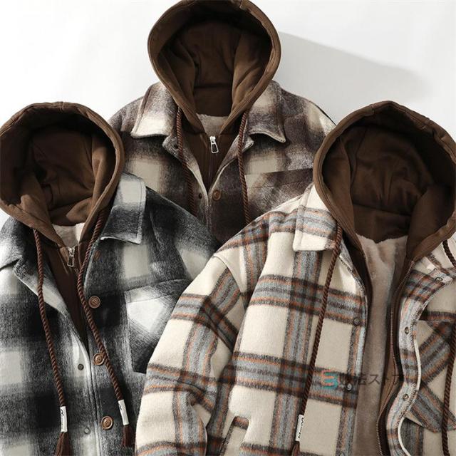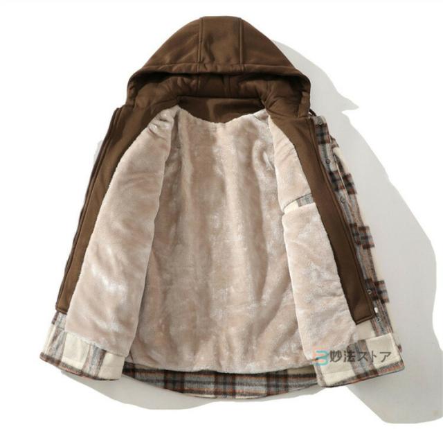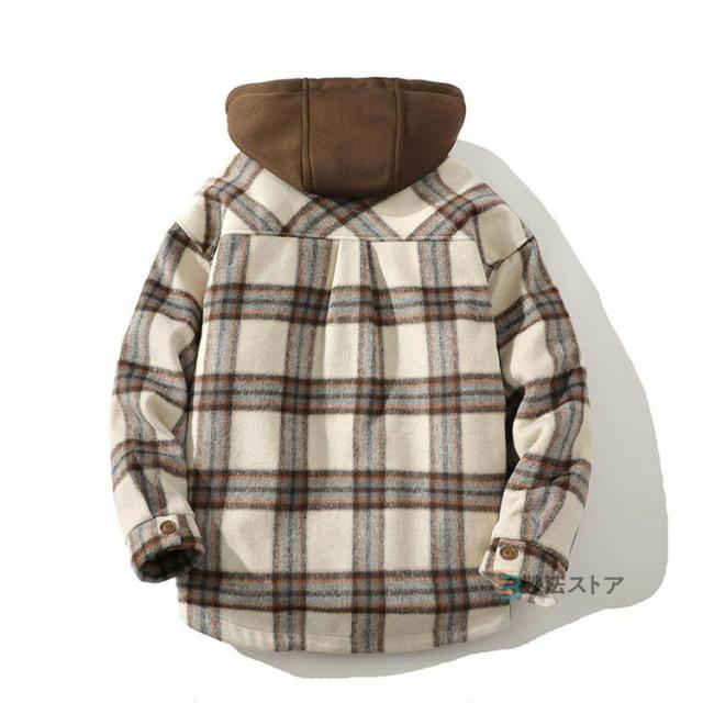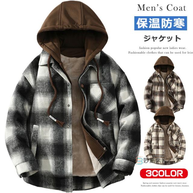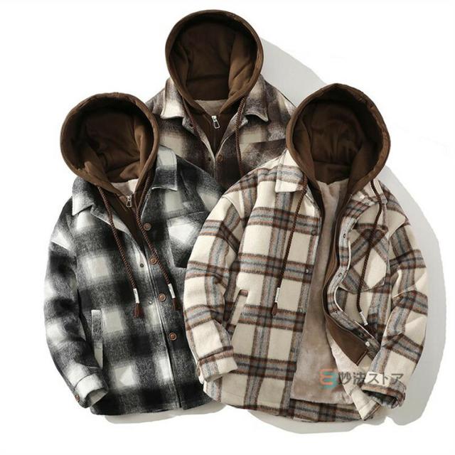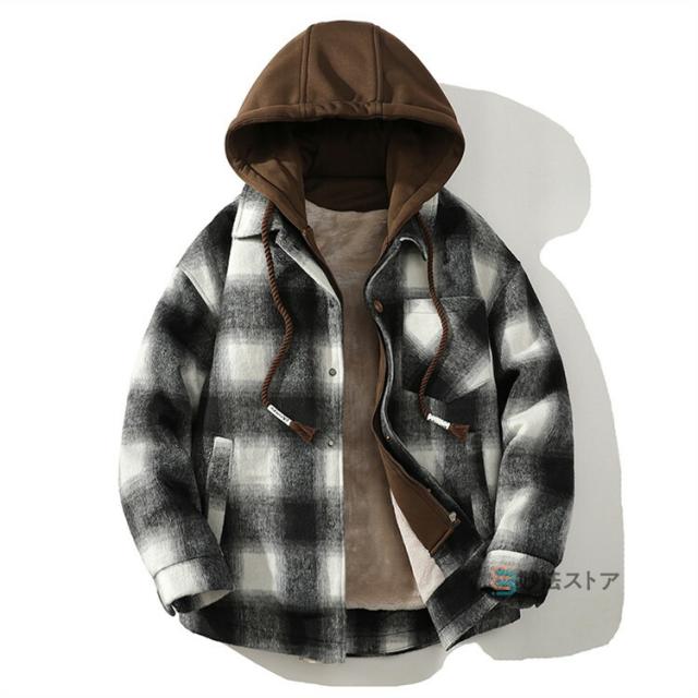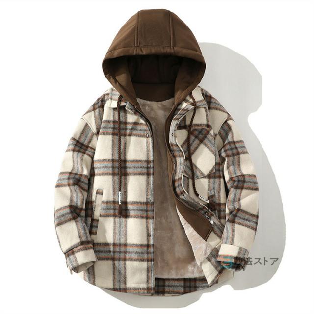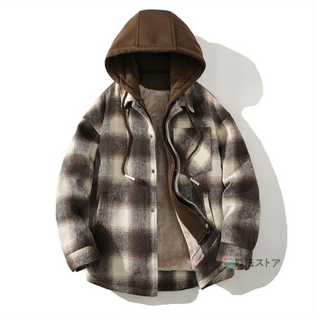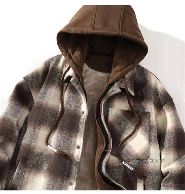 チェックフードジャケット 暖か 裏起毛 メンズ ジャケット ショートコート フード付き カジュアルジャケット 裏ボア あったか ビッグシルエット ペアルック チェック柄 ブルゾン ジャンパー 秋物 秋冬 冬 服