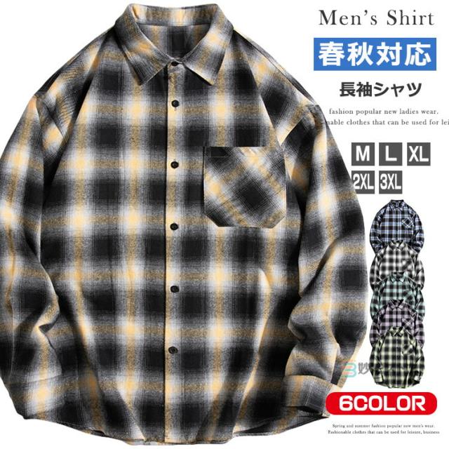 チェックシャツ 長袖 メンズ チェック柄 シャツ カジュアルシャツ 長袖シャツ メンズシャツ トップス ゆったり カジュアル シャツ チェック柄 おしゃれ 春 春物 秋服 秋服 服 メンズファッション