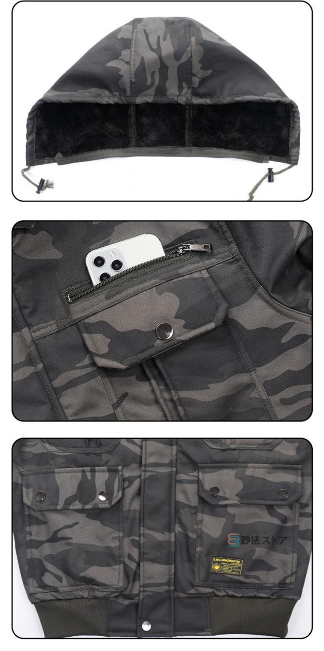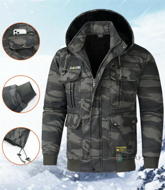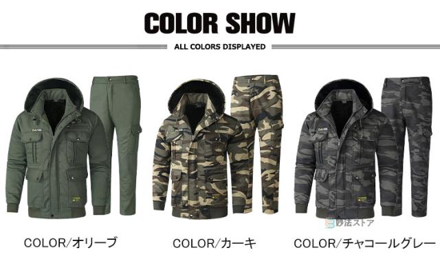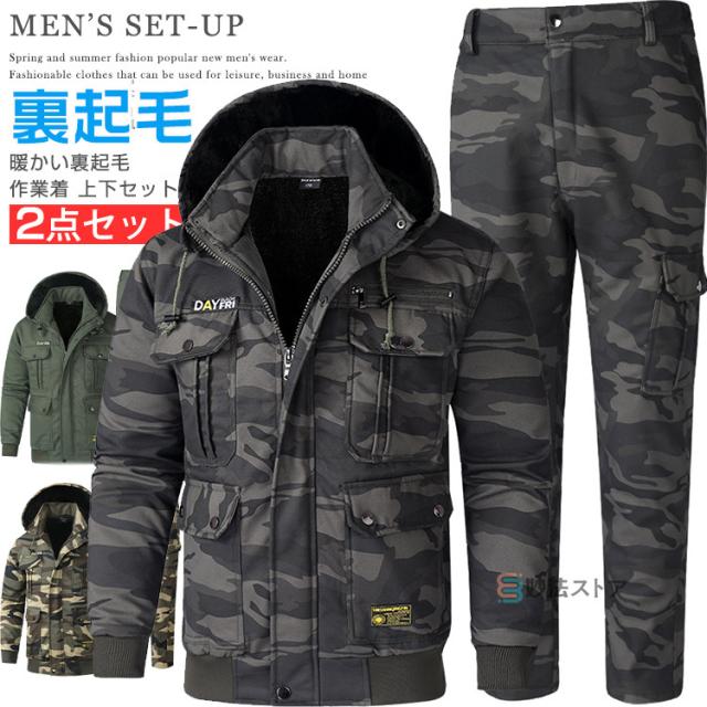 あったか 裏起毛 作業服 作業着 メンズ 上下 暖かい 長袖 迷彩服 無地 冬服 上下セット 軍服 セットアップ フード脱着可 M-65ジャケット ミリタリーパンツ 冬服 防寒 アウトドア キャンプ ワーク 秋冬