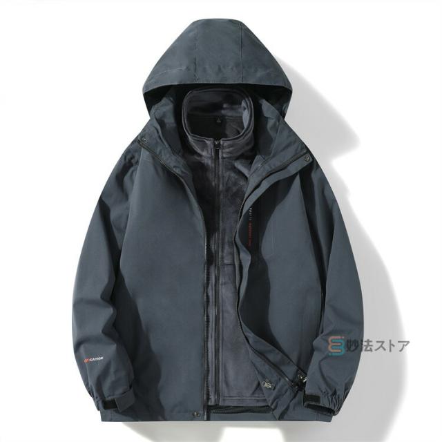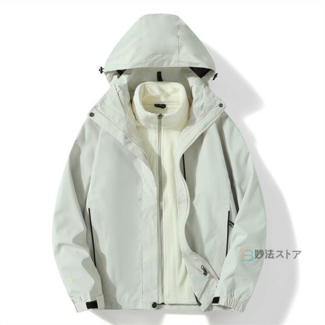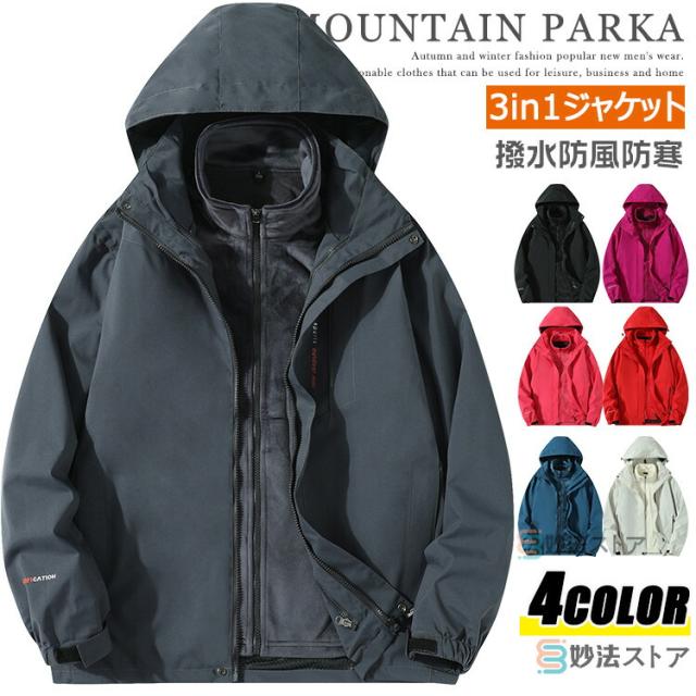 防寒 暖かい フリースライナー付き マウンテンパーカー メンズ 2点セット マンパー アウター アウトドアジャケット ウインドブレーカー ミリタリー ジャケット レディース ブルゾン 3in1ジャケット アウトドア 撥水 防風 暖か 秋冬 登山ウェア 登山服 バイク トレッキング