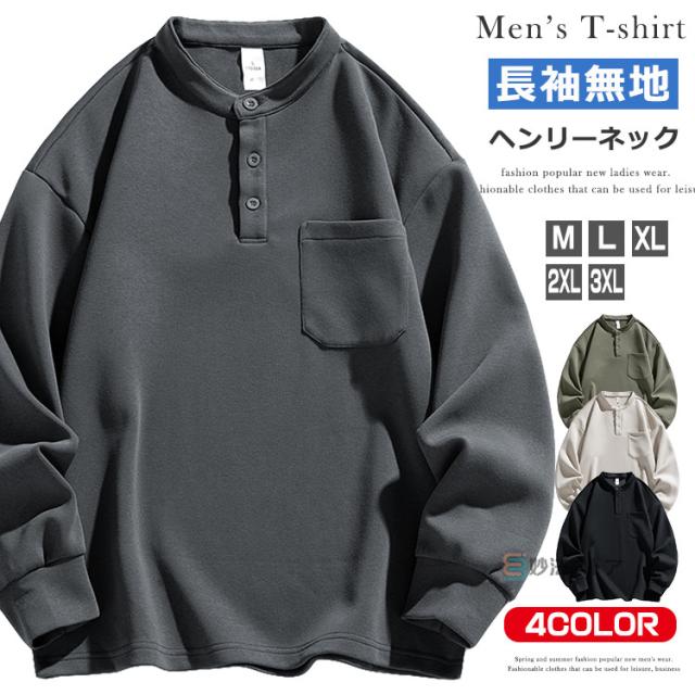 Tシャツ ヘンリーネック tシャツ ロンT メンズ おしゃれ 大人 長袖 長袖Tシャツ 無地 シンプル 定番 カットソー デイリーウエア 男 男性 20代 30代 40代 50代 父の日 春 春物 ファッション 敬老の日