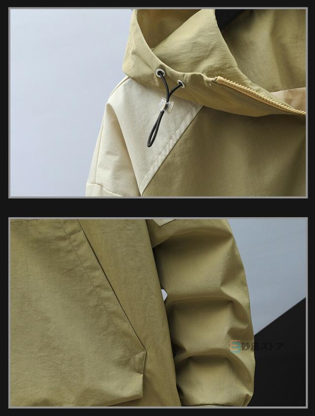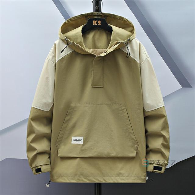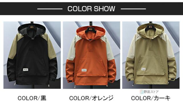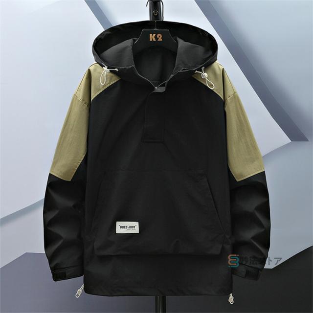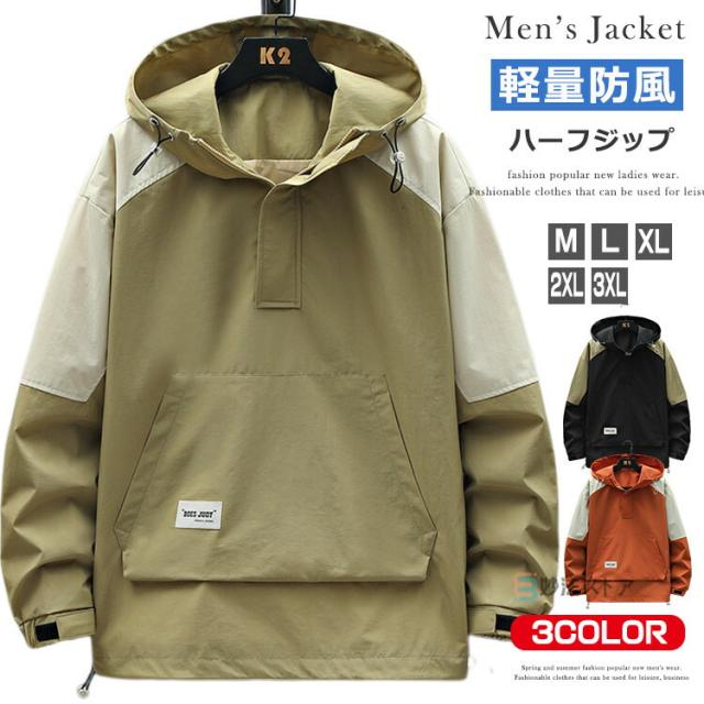 アノラック パーカー メンズ マウンテンパーカー ハーフジップ アノラックジャケット ウインドブレーカー プルオーバー フード 軽量 耐風 大きいサイズ アウター アウトドア カーキ ブラック オレンジ スポーツ ダンス 運動会 イベント ハイキング キャンプ