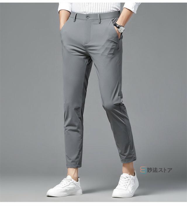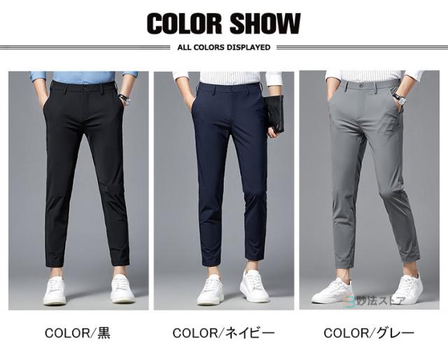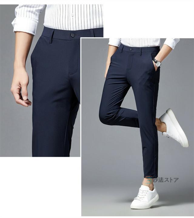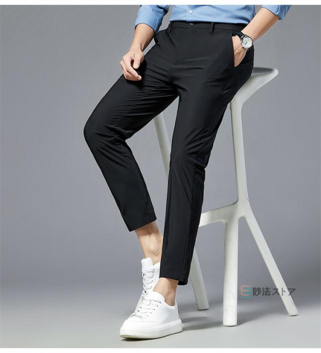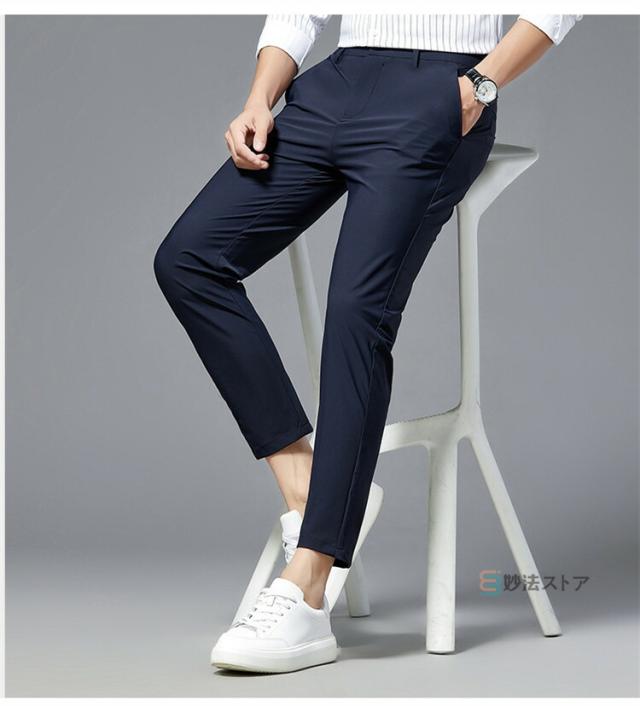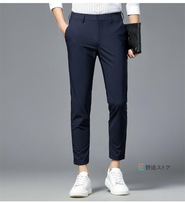 スラックス ビジネス メンズ クールビズ スリム アンクルパンツ ビジネスパンツ 洗える 涼しい ウォッシャブル 夏 夏用 ビジネススラックス 仕事 通勤 テレワーク ゴルフ クロップドパンツ おしゃれ テーパードパンツ ボトムス ズボン 美脚 美シルエット