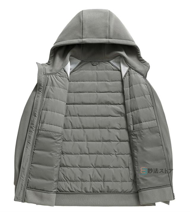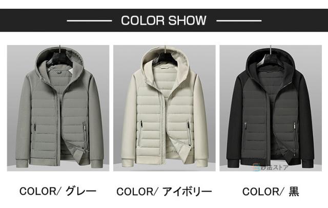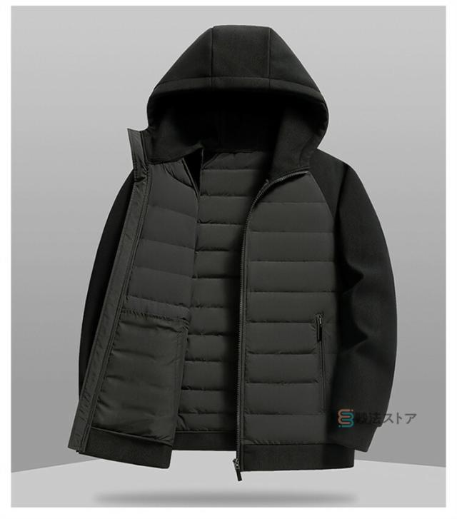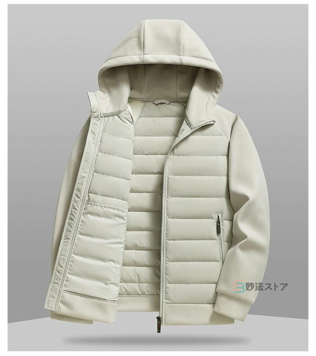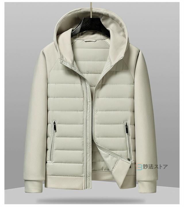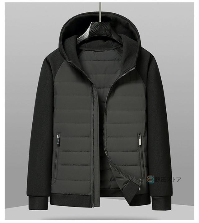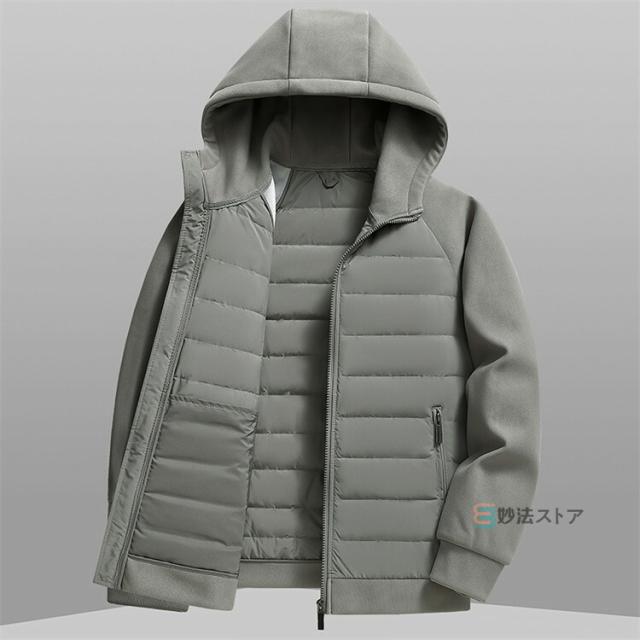 ダウンジャケット 軽量 暖かい フード ニット袖 ダウン ジャケット メンズ 秋冬 フード 冬服 アウター ブルゾン ジップアップ ラグランスリーブ メンズファッション カジュアル アウター おしゃれ