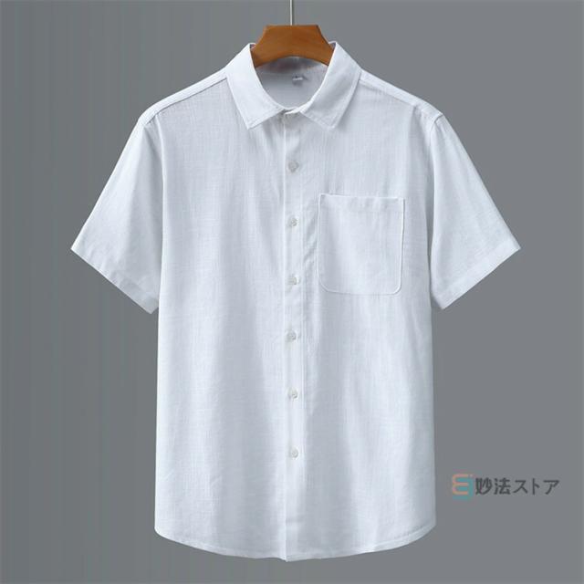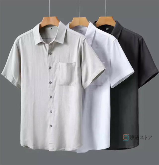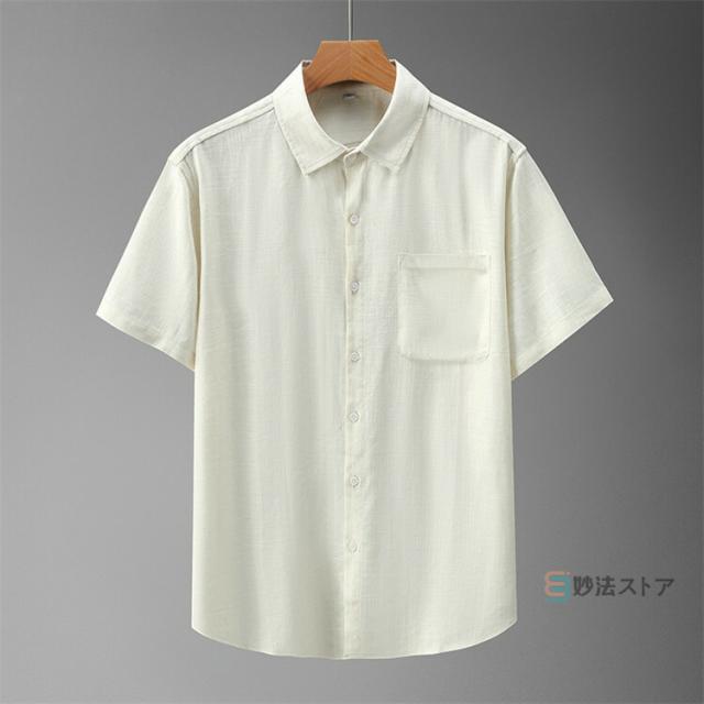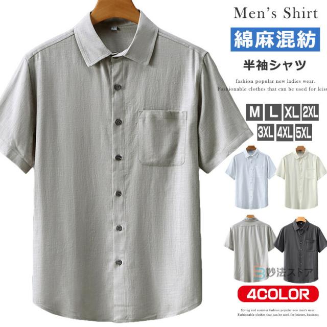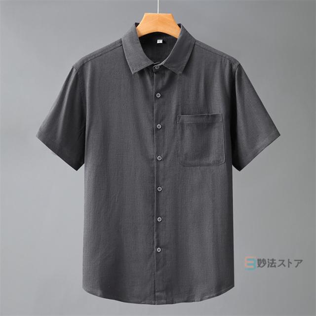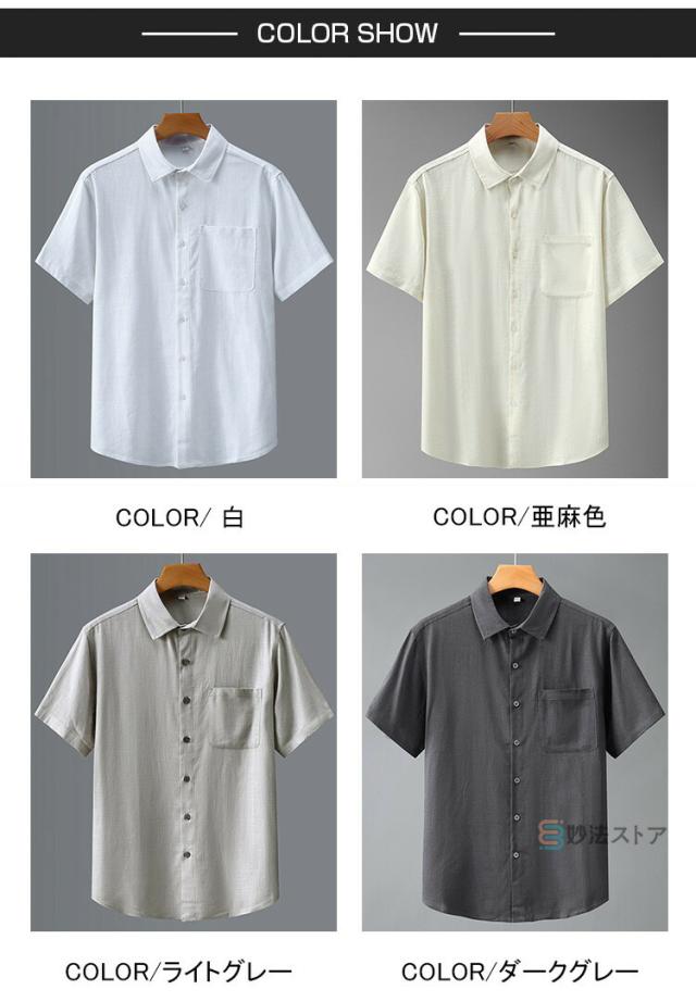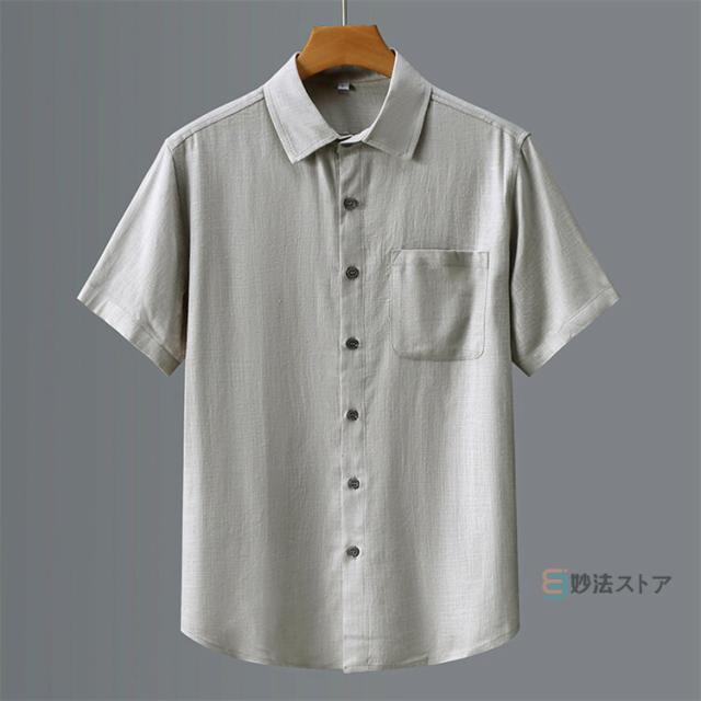 リネンシャツ メンズ 半袖 カジュアルシャツ 麻シャツ 綿麻シャツ シニア シャツ 無地 ビジネス トップス 夏 夏服 涼しい 40代 50代 60代 メンズファッション 快適 トップス 半袖シャツ 折襟 父の日 ギフト