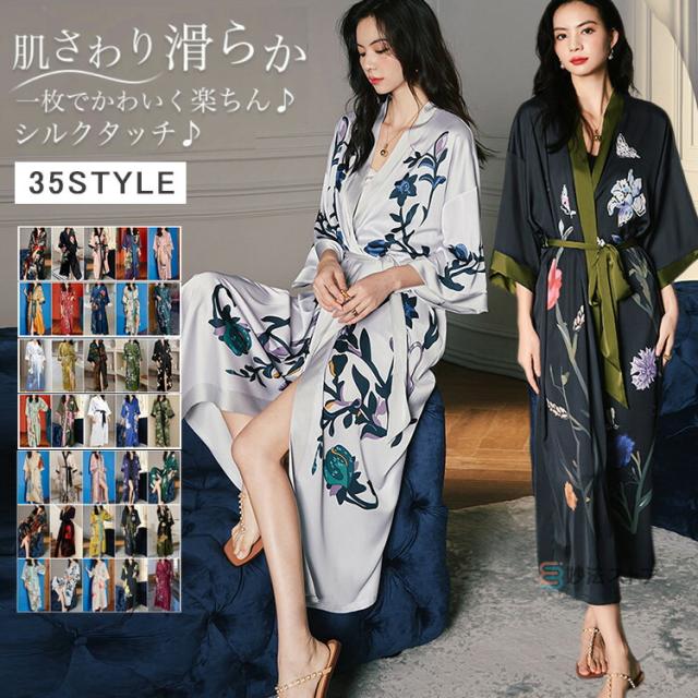 バスローブ レディース シルクタッチ 薄手 ガウン 夏用 ママ 部屋着 ルームウェア ロング ガウン 単品 ナイトガウン サテン浴衣 和服 レディース 浴衣式 軽量 膝上 ロングローブ 女性用 サテン着物ドレスガウンラウン 母の日 プレゼント