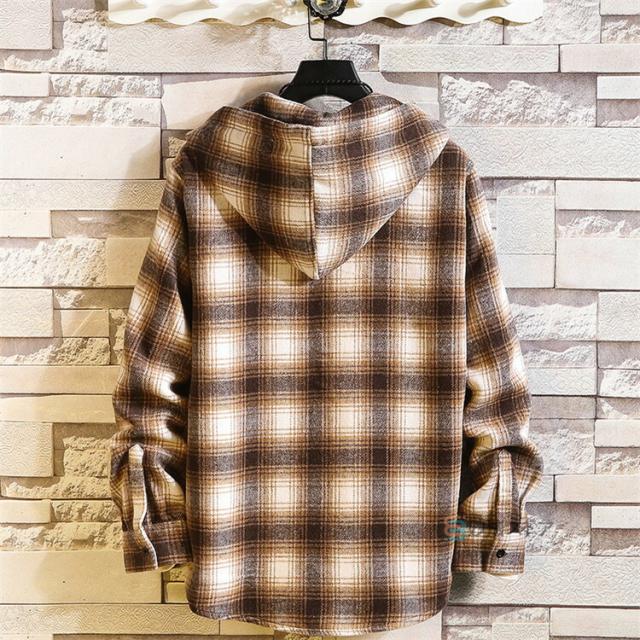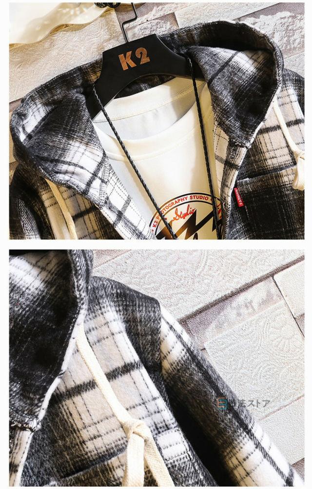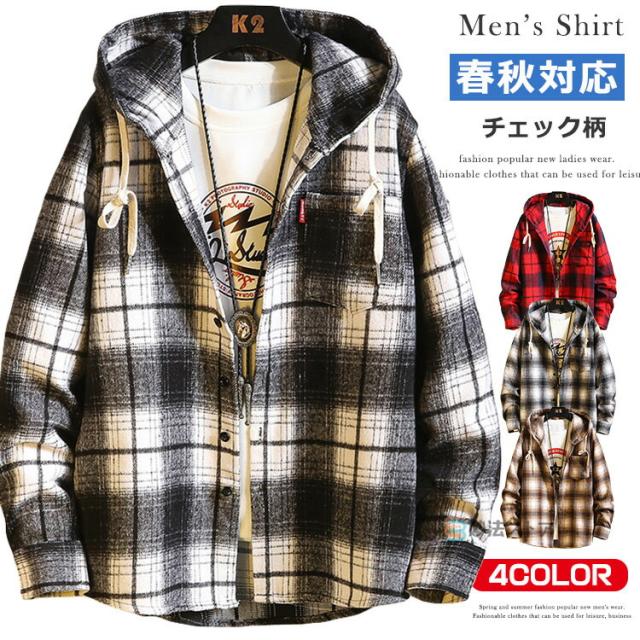 長袖シャツ メンズ フード付き シャツ チェック柄 チェックシャツ カジュアルシャツ ユニセックス レディース シャツジャケット 胸ポケット 羽織 おしゃれ シャツ 秋服 長袖 パーカー shirt 通勤 通学 ストリート カッコイイ