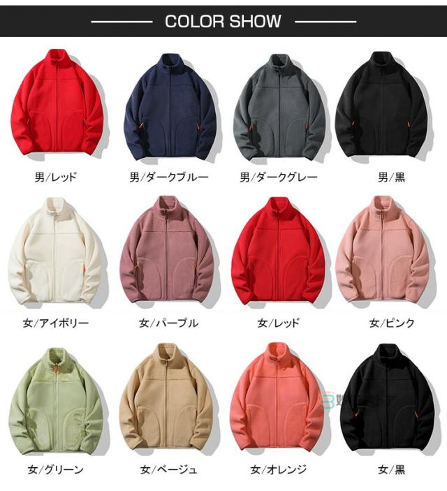 フリースジャケット レディース メンズ フリース ブルゾン ジャケット ボア スタンドネック 防寒 アウター カジュアル 部屋着 ゴルフウェア アウトドア 起毛 暖か 秋 冬 服 フルジップ 人気 おしゃれ