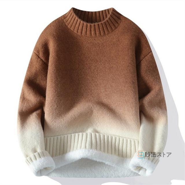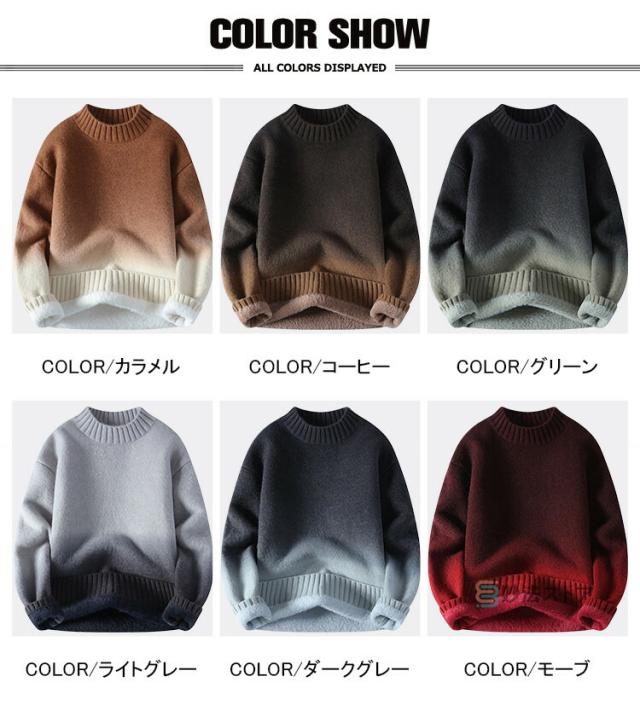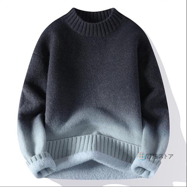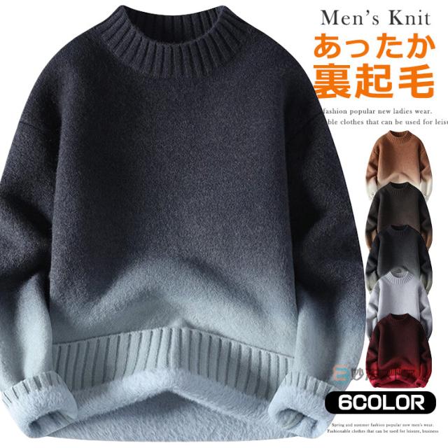 裏起毛 ニット メンズ セーター ニットセーター 長袖 グラデーション 防寒 暖かい カジュアル ビジネス 通学 ニット トップス 厚手 洗える スリム メンズニット 20代 30代 40代 メンズファッション おしゃれ 秋 冬