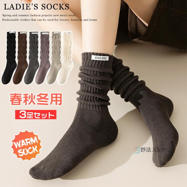 ルーズソックス 3足セット くしゅくしゅ ハイソックス 女性 レディース かわいい くつした 靴下 大人 高校生 スクール おしゃれ ルーズソックス ストリート カジュアル 普段使い 春秋冬 スニーカー ブーツソックス